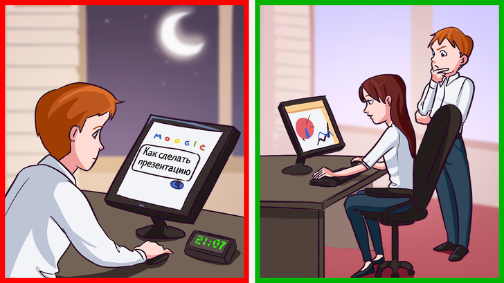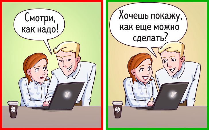 Не демонстрируйте собственное превосходство, если считаете, что вы опытнее. Даже если это действительно так, подобное поведение жутко раздражает, особенно если оно исходит от новичка. Если вы знаете, как можно помочь коллеге, предложите помощь, но без излишнего пафоса. Внимание: оказывая помощь, не забывайте про пункт № 7.