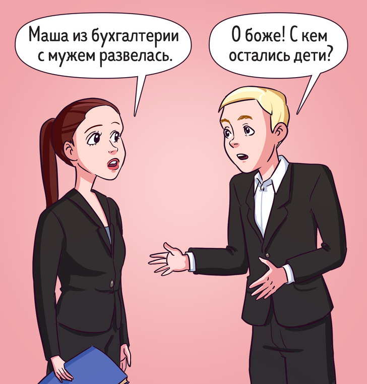 Да-да, звучит странно, но будет нелишним обращать внимание на информацию, которая касается не только работы, но и личной жизни сотрудников, особенно если это ваши подчиненные. Помните, что они живые люди, а не роботы, и некоторые личные неприятности могут вывести их из строя. Здорово, если вы будете понимать, когда стоит проявить участие и быть с коллегой помягче. При этом не забывайте фильтровать информацию и сами старайтесь не участвовать в распространении сплетен.