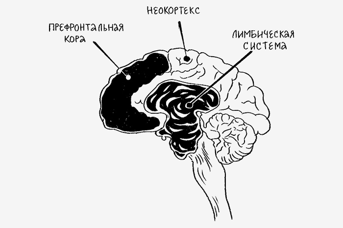 В вопросах силы воли критически важно взаимодействие между более древними зонами, которые отвечают за эмоции, — главным образом, лимбической системой и возникшей относительно недавно новой корой, ответственной за осознанное мышление